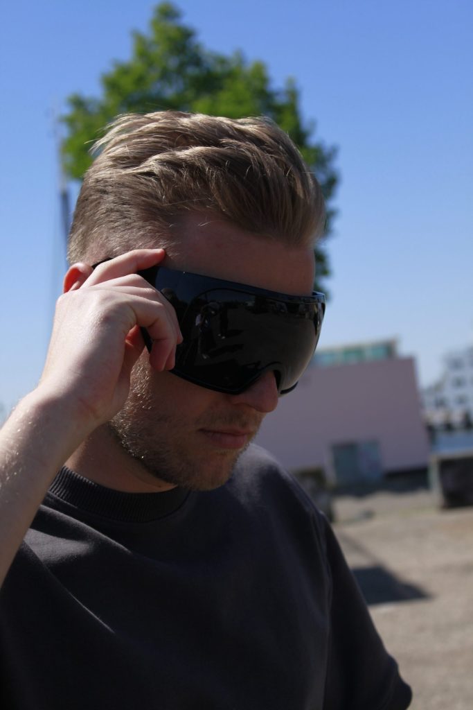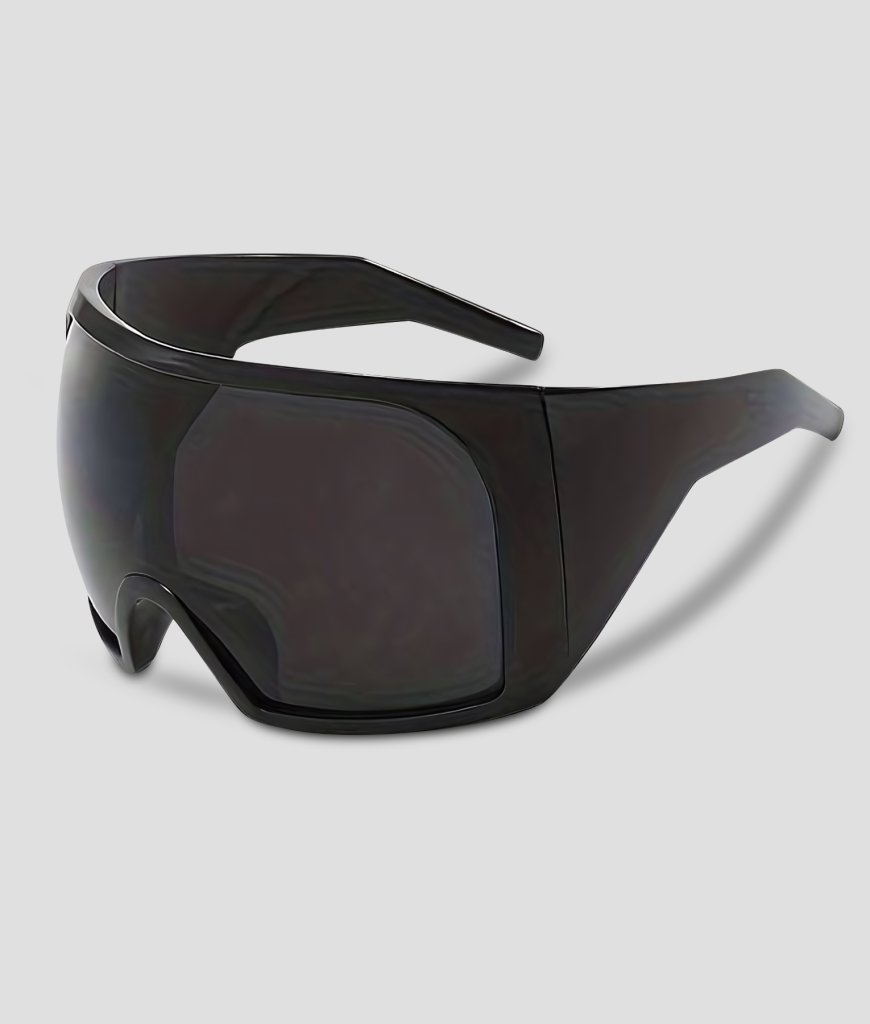 Cythrion is één doorlopende, rookzwarte lens die van slaap tot slaap loopt en alles eronder direct een tik mysterie geeft. Het frame is minimal en strak, bijna monolithisch, alsof je een stuk nacht op je neus draagt. Geen losse frutsels of sierwerk; alleen een cleane curve die lasers opslurpt en stroboscopen terugkaatst alsof het niets is. Het oogt als snelheid in stilstand, techno-ready aan de voorkant en backstage-cool aan de zijkant. Je hoeft niets te zeggen—je silhouet praat al met de stage.