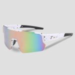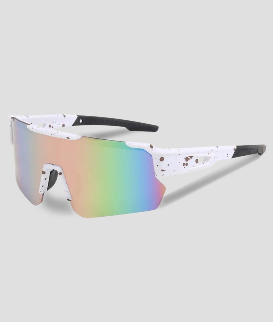 Beryl is één brede, iriserende shield die je gezicht verandert in een lichtpaneel. De lens blendt kleuren als een sunrise boven de main stage, terwijl het witte frame met spetters die rauwe, grimmige edge geeft—clean én street. Het silhouet is strak en futuristisch; nul fratsen, alleen een curve die lasers vangt en terugkaatst alsof je eigen lichtshow meeloopt. In de techno bunker oog je mysterieus, op de openlucht stage lijk je zelf de spot. Dit is de bril die zonder praten zegt: ik leid de vibe.