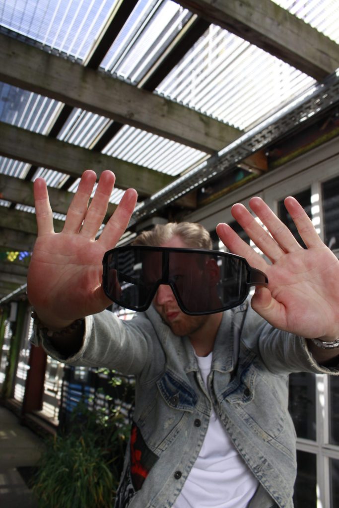 Darkor oogt als een stealth-machine. De brede, doorlopende lens trekt je gezicht strak en geeft je die “ik regel het wel”-blik. De opengewerkte details in de poten geven een agressieve, technische vibe—alsof je zo van de grid naar de stage bent gelopen. In een techno bunker, bij een hardstyle main of midden op een rave waar de rook hangt als mist: deze bril houdt je silhouette clean en maakt je meteen herkenbaar. Maat, dit is minimalisme dat herrie durft te maken.