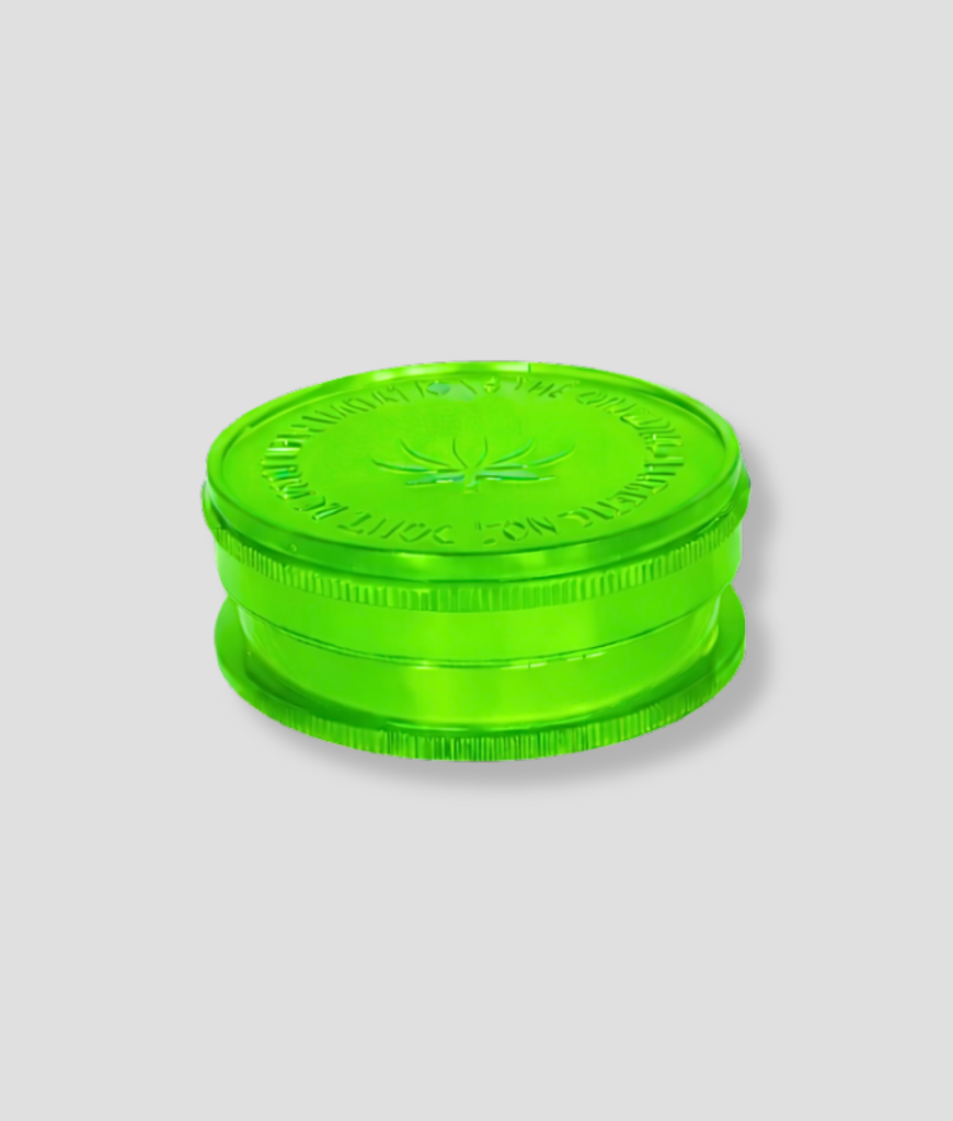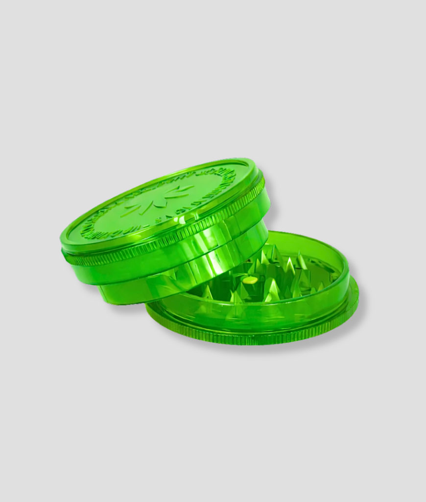 Groene kunststof grinder om “kruiden” fijn te malen. Licht, compact en makkelijk mee te nemen.