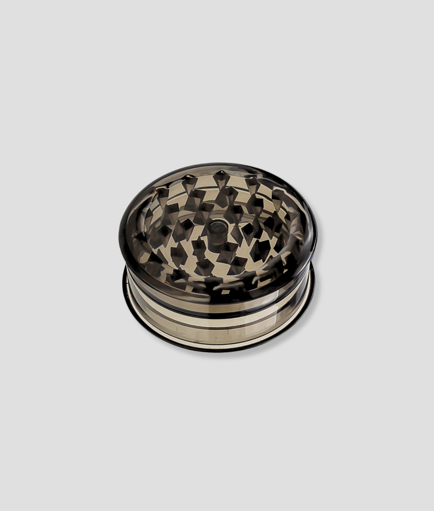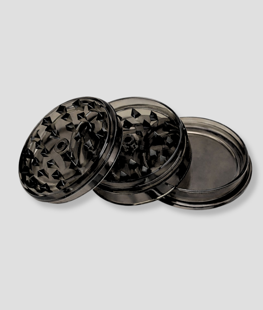 Zwarte kunststof grinder om snel “kruiden” te malen. Licht, simpel en makkelijk mee te nemen.