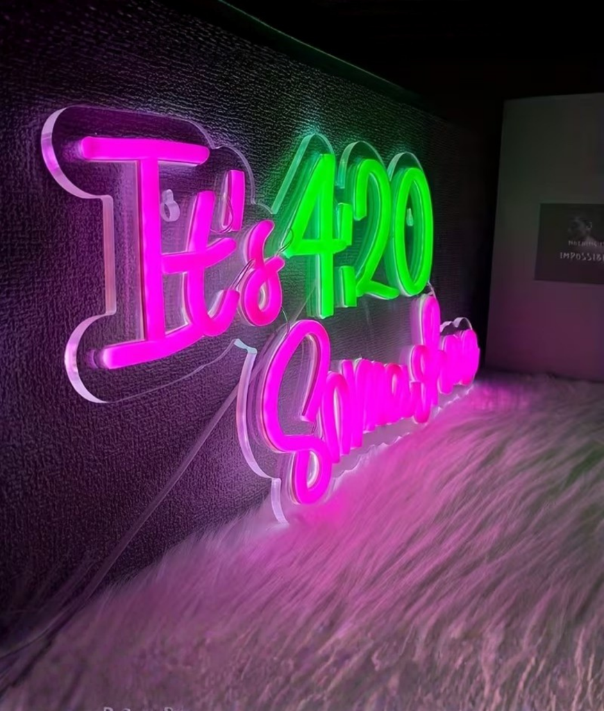 De neon glow geeft je dat clubgevoel, zelfs als je gewoon door de supermarkt loopt op een dinsdagochtend. Je ziet die mix van groen en roze licht en je weet meteen: ja, dit is voor mensen die het nachtleven snappen. Het zegt niets letterlijk, maar de sfeer is luid genoeg. Je straalt het soort zelfvertrouwen uit dat iemand heeft die overal binnenkomt alsof hij de stage al bezit.