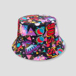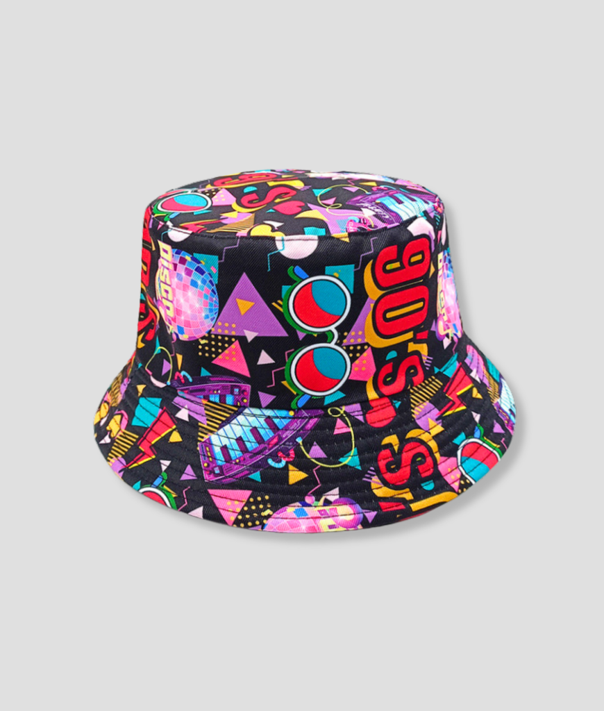 Je zet ’m op en ineens hoor je synts, voel je confetti en ruikt de avond naar retro. Deze bucket hat is pure rewind-knop: felle kleuren, speelse shapes en die oldschool vibe die je outfit meteen laat knallen. Niet braaf nostalgisch, maar brutaal future-retro—je loopt binnen alsof de stage een arcadekast is en jij op high score jaagt.