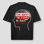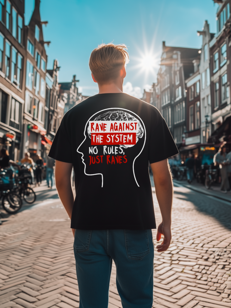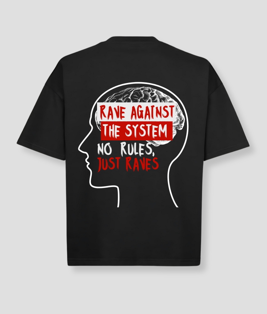 Rave against the system met dit unieke zwarte tshirt met grote opdruk.