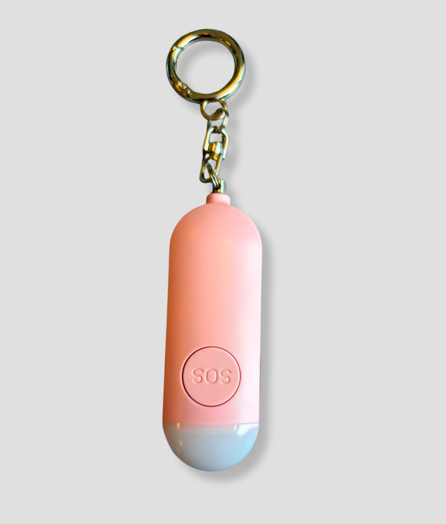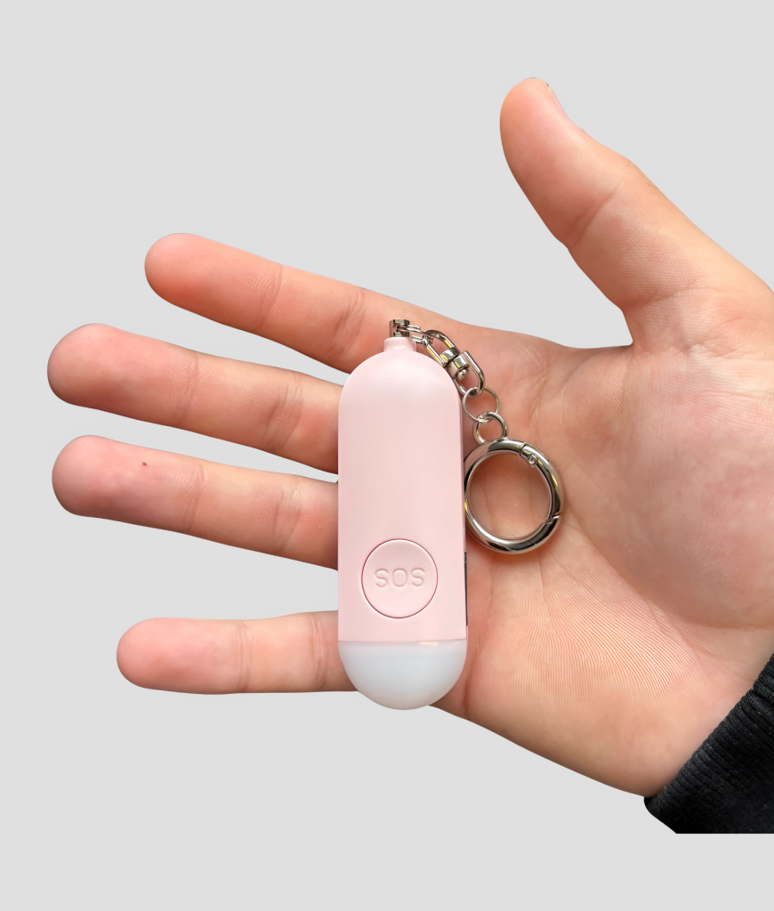 Deze roze capsule ziet er cute uit, maar is serieus slim. Trek eraan en hij maakt direct een hard geluid én geeft een knipperend lichtsignaal — tot wel 1 uur lang.