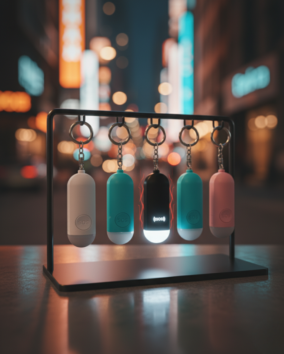 Deze capsulevormige sleutelhanger ziet er misschien simpel uit, maar vergis je niet: hij maakt serieus indruk. Trek eraan en hij gaat direct aan de slag met hard geluid en flitsend licht – tot wel 1 uur lang.