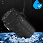 De All in sig is robuust en tactisch uitgevoerd in strak zwart. Het design is ontworpen voor duurzaamheid en functionaliteit, met een stoere, no-nonsense uitstraling. Hij is compact genoeg om mee te nemen, maar stevig genoeg om elke festival chaos te doorstaan. De draaglus en de solide behuizing laten zien dat dit product serieus is over bescherming en gemak.