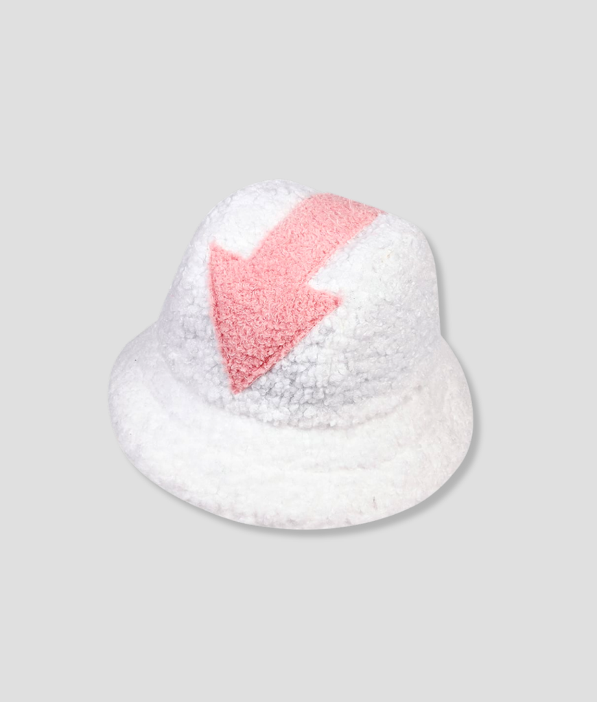 Je trekt ’m op en de wereld voelt meteen zachter. Deze witte teddy bucket hat met speelse roze pijl geeft je look een knusse, eigenwijze twist. Winterse campusdagen, avondwandels naar de club of die vroege open-air waar je nog damp ziet—jij bent warm, comfy en toch duidelijk aanwezig. Niet schreeuwerig, wel onmiskenbaar jij.