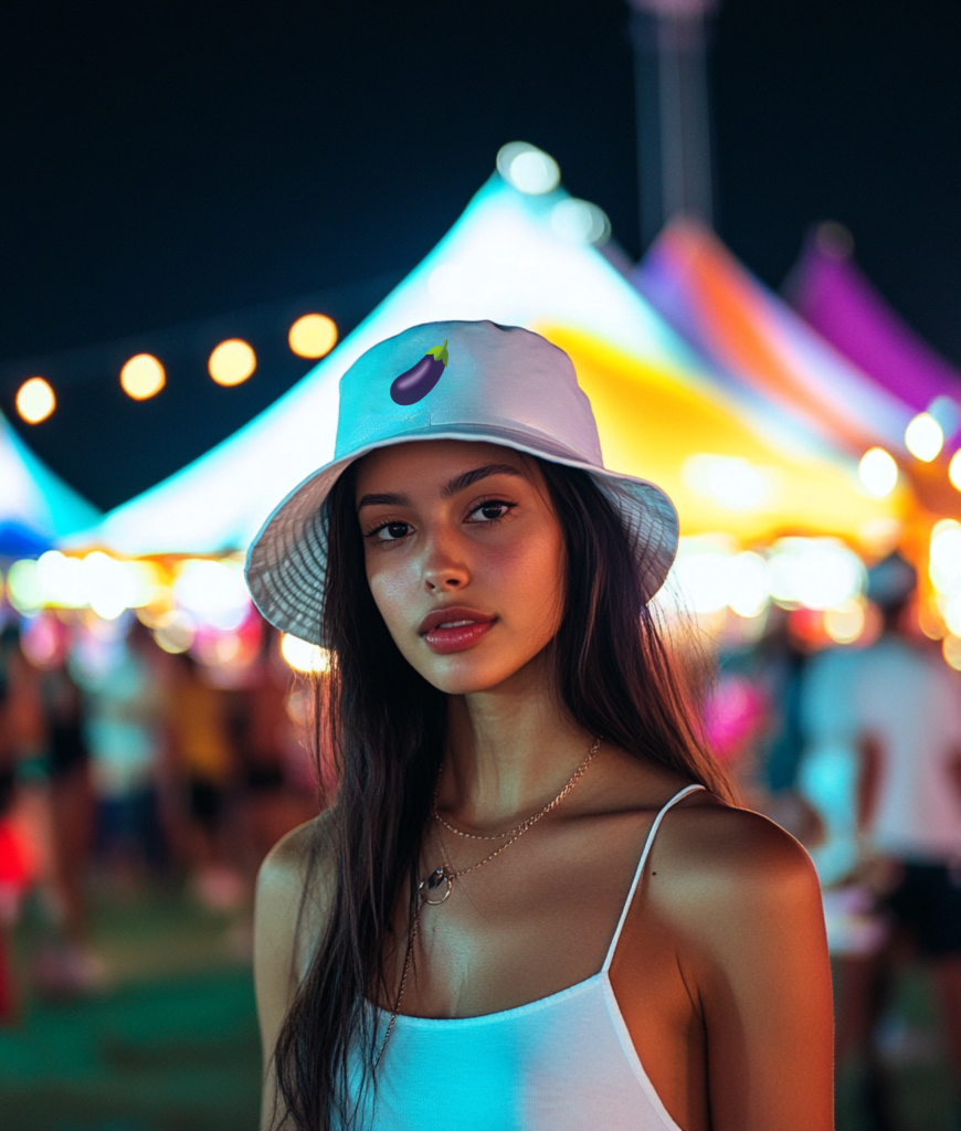 Met deze gruwelijk frisse witte buckethat en een aubergine (ja, die emoji!) front and center, laat je subtiel weten dat je gevoel voor humor on point is. Perfect voor festivals, stranddagen of gewoon wanneer je even wat extra flair wilt toevoegen aan je look. Of je nu een knipoog maakt naar je favoriete emoji of gewoon houdt van een opvallend design, met deze hoed ben jij helemaal het mannetje. Durf jij ‘m te dragen?
