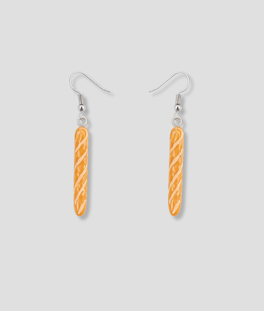 Baguette Oorbel met een knapperig mini-stokbroodje als hanger – recht uit de fantasiebakkerij, lang, luchtig en perfect voor een vleugje Franse flair aan je look.