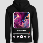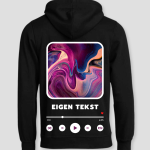 De Eigen Tekst Hoodie is een opvallende keuze voor wie van muziek en unieke kleding houdt. Het ontwerp bevat een abstracte achtergrond met felle kleuren en een muziekspelerinterface, compleet met een afspeelknop en een tijdsbalk. Voeg je eigen tekst toe om de hoodie helemaal jouw stijl te geven.