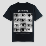 Dit shirt heeft een opvallende print van verschillende pupillen in close-up, met erboven de tekst “BIJNEMEN?”. Het speelt met humor en een knipoog naar de uitgaans- en festivalcultuur. Het ontwerp straalt precies die edgy, underground vibe uit waar festivalgangers van houden.
