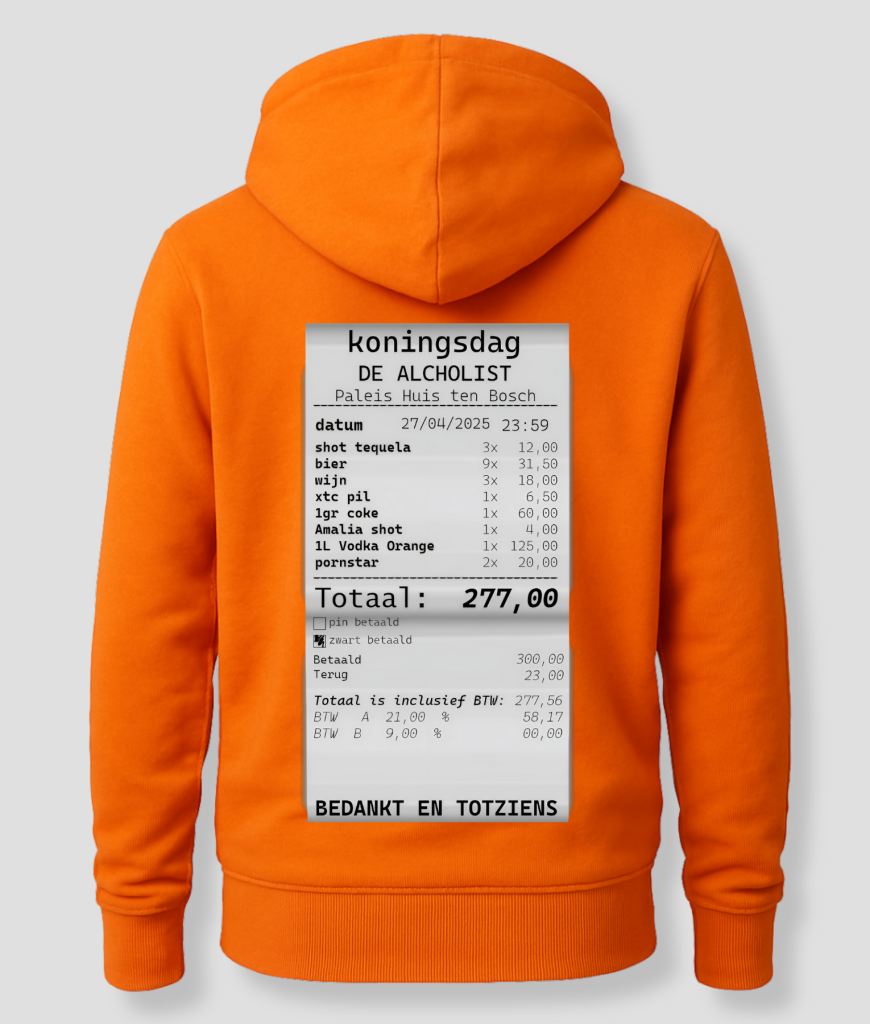 Bonnetje op Willem Hoodie – De hoodie voor wie altijd het juiste bewijs bij de hand heeft. Draag ‘m met een knipoog naar de koning zelf en maak van elke dag een feest!