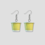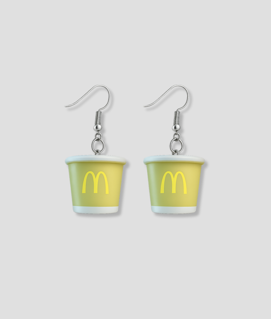 Mini-buckets met goudgele patat, precies zoals je ze in je hand hebt na een nacht waarin alles net iets harder ging dan gepland. Geen glitter, geen glamour, maar die herkenbare fastfood-energie die iedereen begrijpt. Het is nostalgie, snackcultuur en nachtleven in één klein emmertje. Een knipoog naar iedereen die ooit om kwart voor sluitingstijd nog naar het loket sprintte. Deze oorbellen zeggen zonder woorden: ik ben team friet, maat.