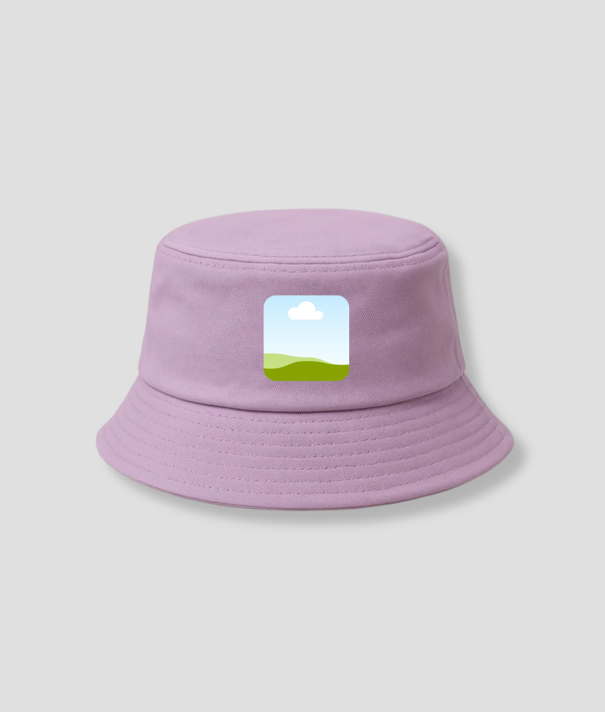Deze bucket hat werkt het best als je ’m niet probeert te verkopen. De kleur houdt het rustig, de foto zorgt voor de twist. Dat evenwicht maakt ’m makkelijk om op te zetten, maar toch anders dan de rest.
