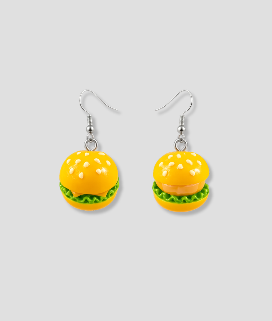 Je kent dat moment wel: het is diep in de nacht, je staat buiten de club, en ineens smaakt alles naar burger. Niet chique. Niet verfijnd. Gewoon die pure, sappige craving waar je hart sneller van gaat kloppen. Deze Burger Oorbellen zitten precies in die vibe. Ze zijn rond, geel, speels en absoluut niet verlegen. Dit zijn oorbellen die zeggen: ja, ik ben snack-minded en ja, ik draag het met trots. Geen gene. Gewoon smaak.