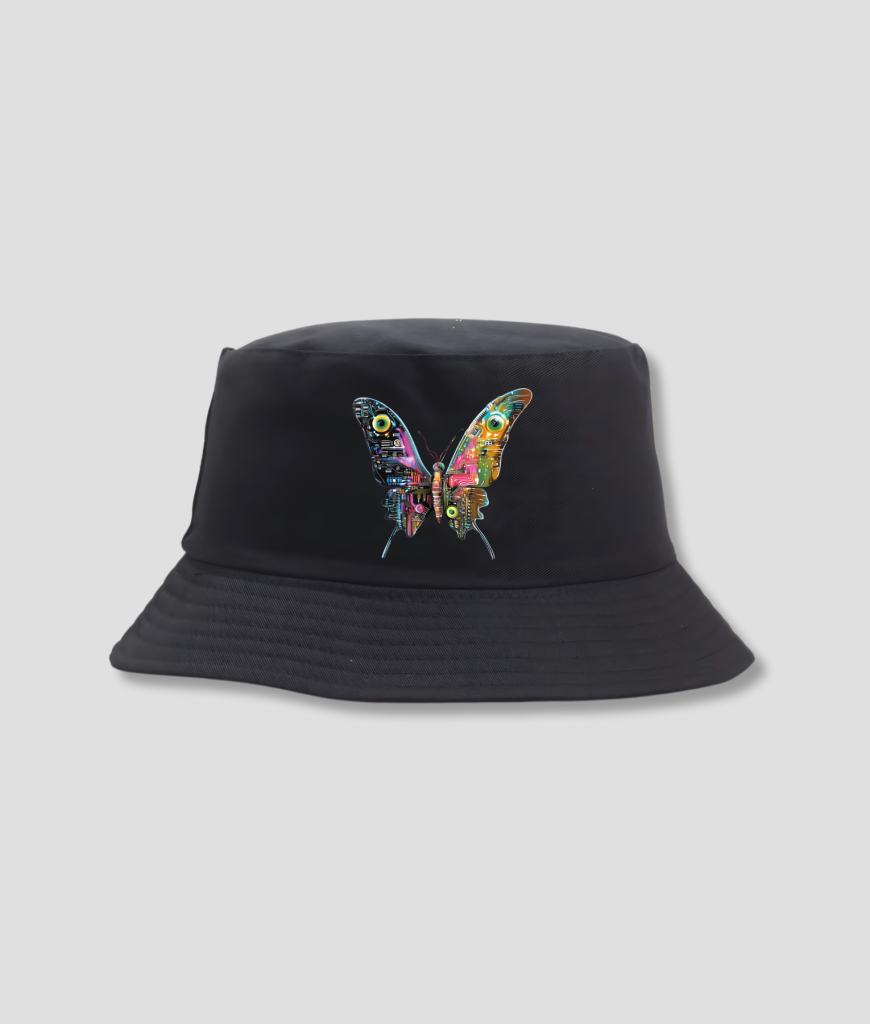 Maak een statement met deze zwarte buckethat en een opvallende vlinder! Met de stoere, donkere tint van zwart en de speelse vlinder op de voorkant, ben jij de koning of koningin van de casual coolness. Perfect voor festivals, straatstylers, of gewoon om je eigen flair te laten zien. Zet ‘m op en vlieg op de vibes van deze unieke combinatie!