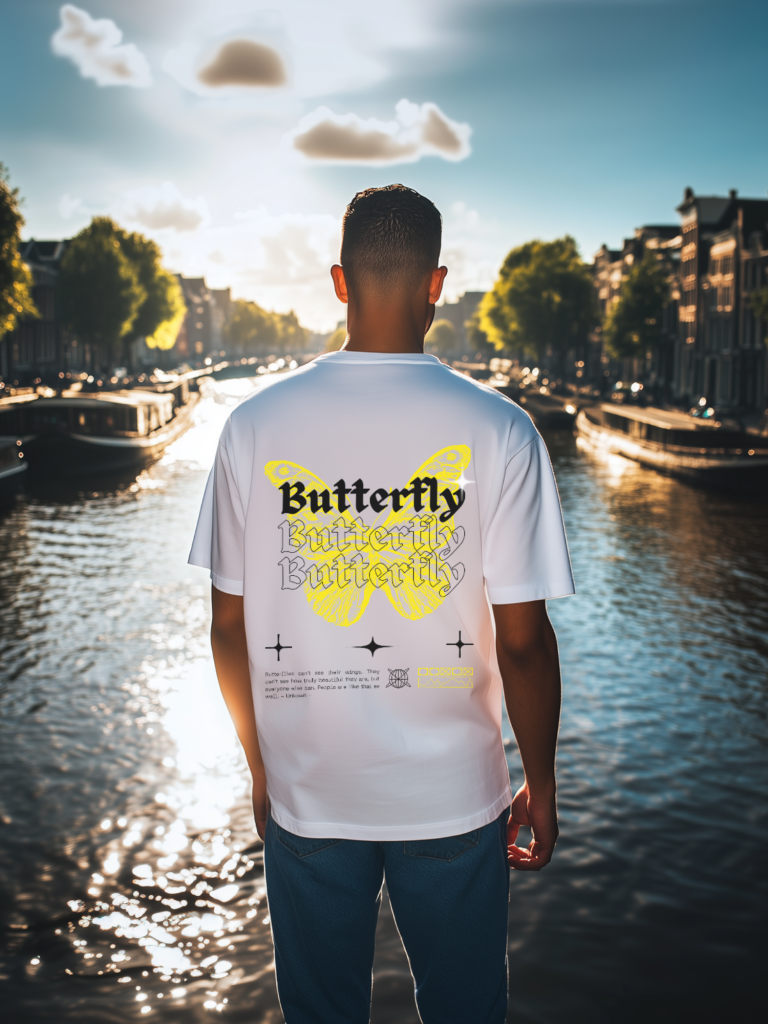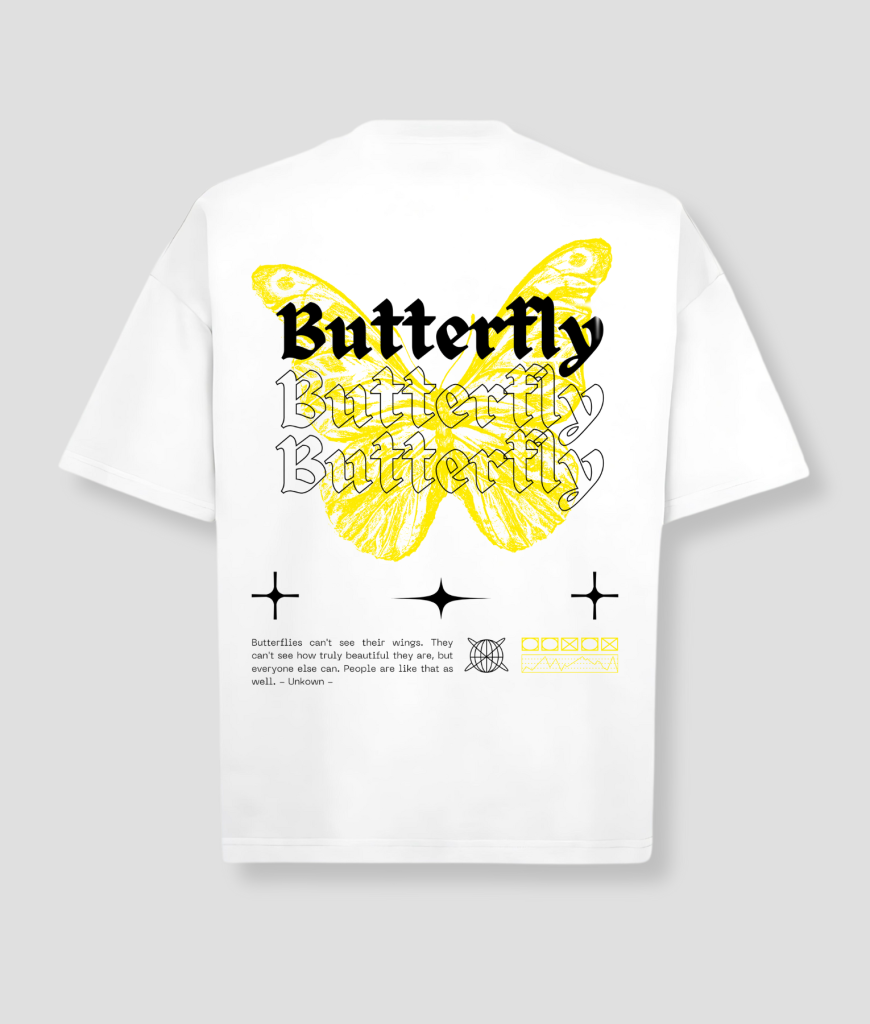 Oversized butterfly festival T-shirt, lekker fladderen vrienden.