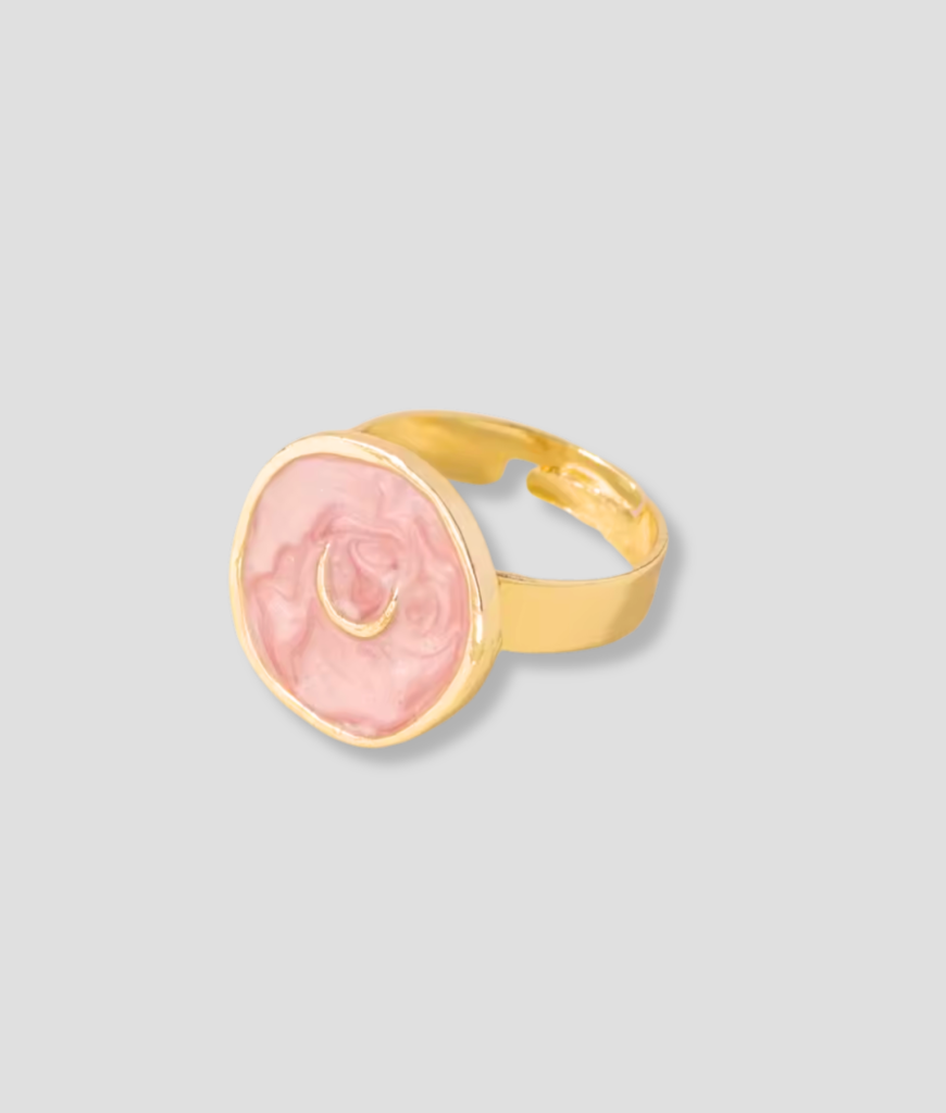Deze gouden ring met roze steen en maansymbool straalt elegantie en vrouwelijkheid uit. De subtiele glans en zachte kleur geven elke look een romantisch accent, terwijl het maantje symbool staat voor intuïtie en balans. Dankzij de verstelbare maat zit hij altijd comfortabel. Een verfijnd sieraad dat perfect past bij wie houdt van stijlvolle eenvoud met een vleugje mystiek.