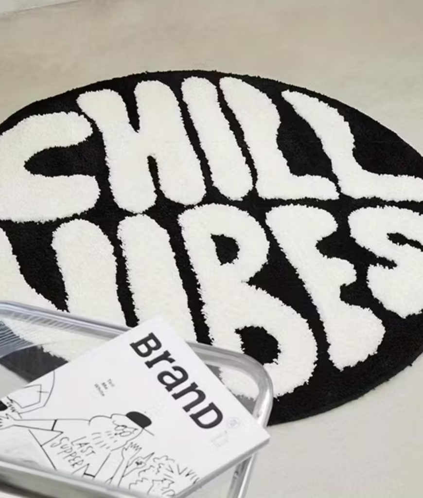 Deze mat straalt precies uit wat jij soms zo hard nodig hebt in je studentenkamer: rust zonder saai te worden. De ronde vorm en die dikke letters voelen als een soort visuele knuffel. Het is alsof de mat zegt dat je gerust even mag instorten na een nacht in de club of een marathon aan colleges. Het speelse ontwerp maakt je kamer meteen gezelliger, zonder dat je hele interieur ineens moeilijk hoeft te doen.