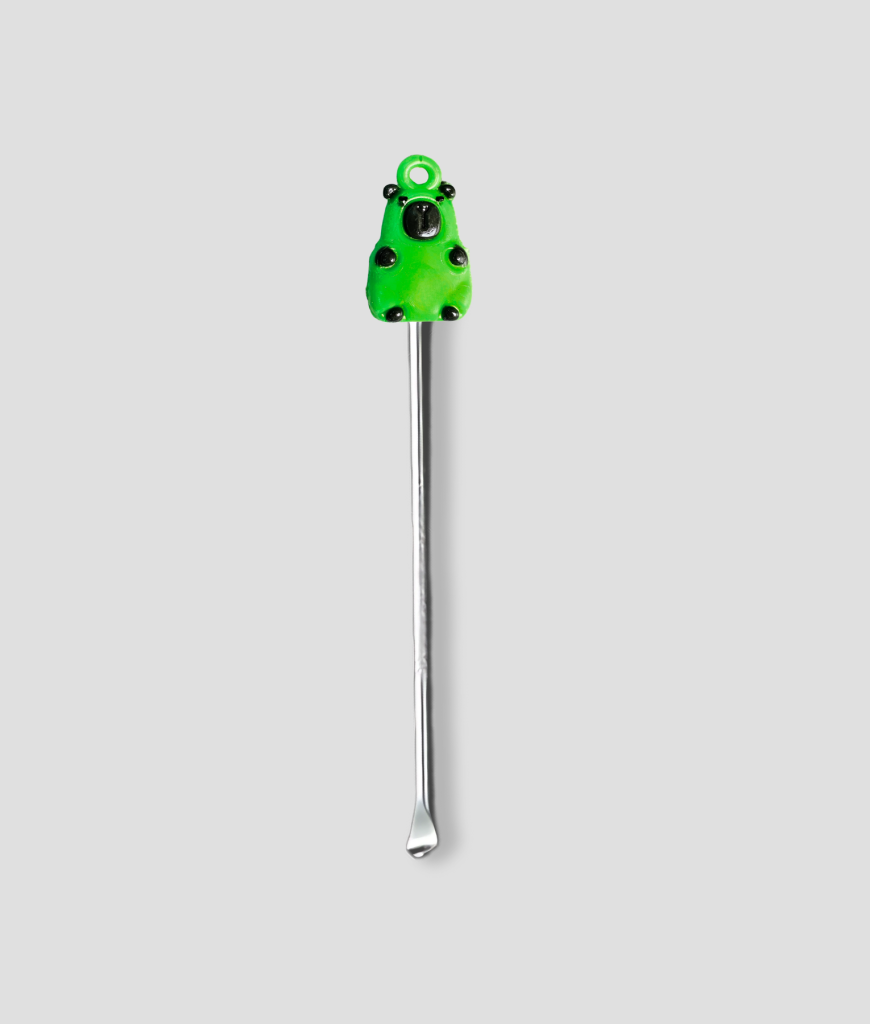 Deze snuifschep is ideaal wanneer je een kleine hoeveelheid van een fijn poeder wilt pakken zonder geknoei. Denk aan kruiden, geu poeders of supplementen die je netjes wilt doseren. Het metalen schepje voelt stevig aan en de capibara-topper maakt het geheel veel leuker dan nodig is.