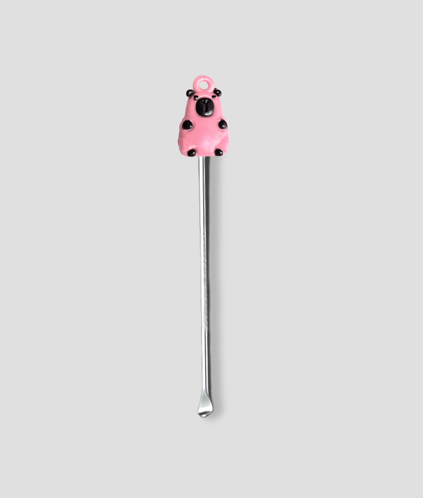 Deze snuifschep is ideaal wanneer je een kleine hoeveelheid van een fijn poeder wilt pakken zonder geknoei. Denk aan kruiden, geu poeders of supplementen die je netjes wilt doseren. Het metalen schepje voelt stevig aan en de capibara-topper maakt het geheel veel leuker dan nodig is.