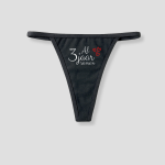 Deze zwarte dames string is te personaliseren met een eigen jaartal, zoals “1 jaar samen”, “3 jaar samen” of een ander moment dat voor jullie telt. De witte tekst en rode hartjes maken het persoonlijk zonder druk te worden.