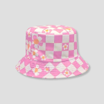 Deze roze Daisy Days is puur zomerenergie in hoed-vorm. Het schaakbordpatroon is speels, maar niet kinderachtig. Het zegt: ik ben vrolijk, maar ik ga ook tot het einde van de avond door. De bloemen zorgen voor die nonchalante, zonnige vibe die je normaal alleen krijgt na drie dagen buiten leven tijdens het festivalseizoen. Deze hoed is het soort statement dat niet schreeuwt, maar glimlacht — en iedereen kijkt toch.