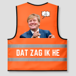 Dit oranje hesje met een print van Willem-Alexander en de tekst “Dat zag ik he” is een grappige outfit voor festivals, koningsdag en studentenfeestjes. Door de felle kleur en opvallende print val je meteen op.