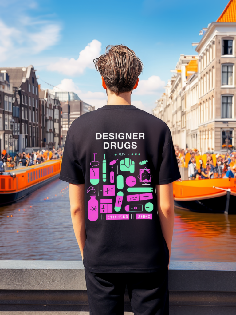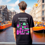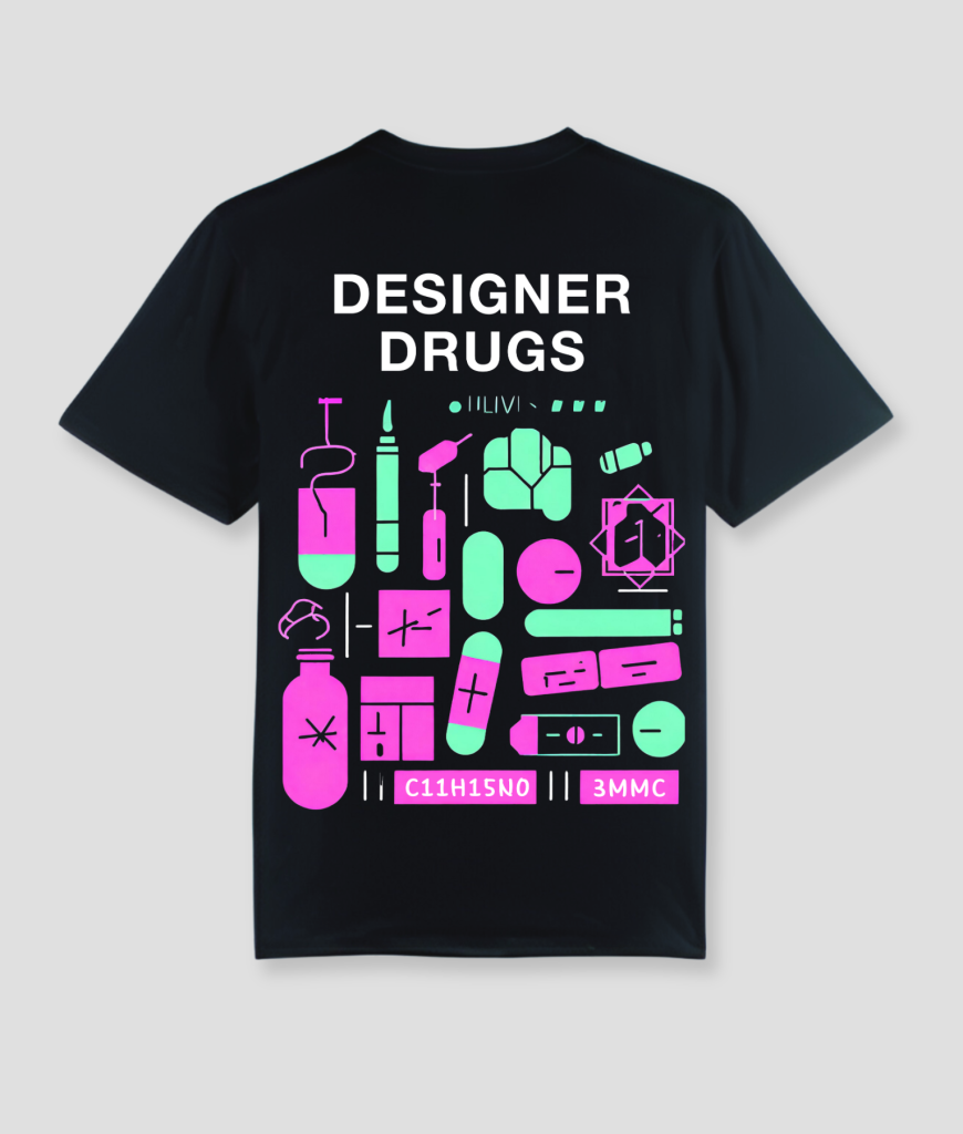 Tshirt met designer dru….. print. Mooie neon details wat zeker goed opvalt en een uniek design heeft voor je volgende festival of rave.