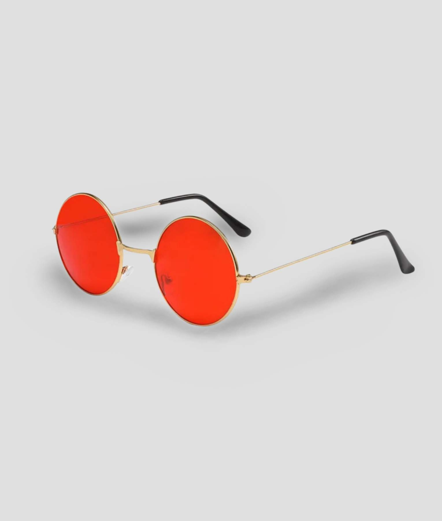 Met de Devila op je neus ben jij de baas van het festivalterrein. De ronde glazen in een vurige mix van oranje en rood zorgen voor een krachtige, opvallende uitstraling die direct de aandacht trekt. Het gouden frame met zwarte uiteinden voegt een vleugje luxe toe, terwijl je look rauw en stoer blijft.