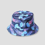 Stel je voor: je loopt met je crew richting de stage, lasers snijden door de lucht, de bass pulseert als een hartslag. Jij zet deze bucket op en ineens lijkt het alsof je onder water danst. Blauwe en roze kwallen zweven over een donker nachtblauw—mysterieuze vibe, frisse look, nul moeite. Dit is die eyecatcher die fluistert: rustig aan de buitenkant, stroming vanbinnen.