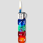 De Dobbelsteen is een vrolijke, kleurrijke verschijning met een uniek stacked design. De gestapelde dobbelstenen in regenboogkleuren creëren een mega tof visueel effect. Het is een speelse en opvallende gadget die direct de aandacht trekt. De aansteker is perfect voor de legend die niet bang is om op te vallen en die een beetje geluk in zijn gear wil.