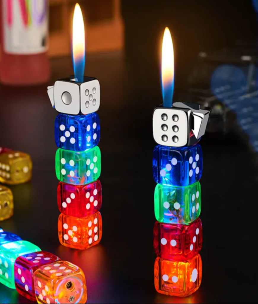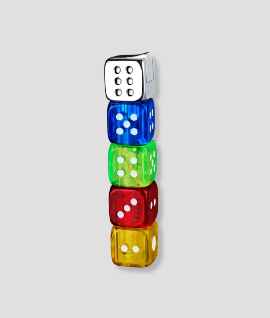 Dit is de Dobbelsteen. De aansteker die het toeval tart en er mega tof uitziet. Deze aansteker in de vorm van een gestapelde dobbelstenen ziet er mega tof uit en werkt super. Hij is hervulbaar en gaat zeer lang mee. De dobbelstenen kunnen ook nog ronddraaien. Een gegarandeerde icebreaker en een statement van speelsheid op elk feestje.