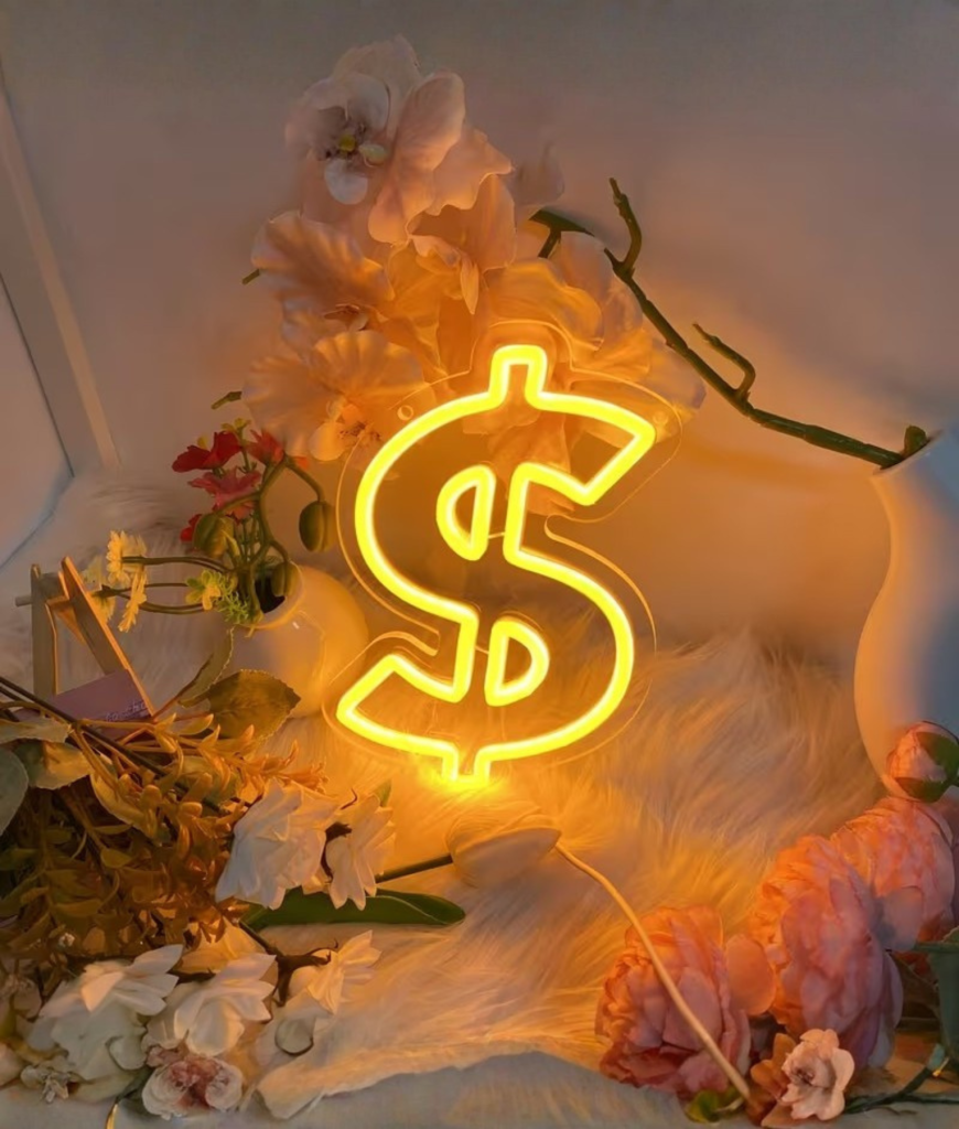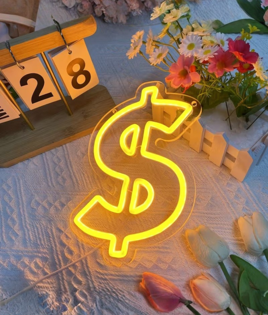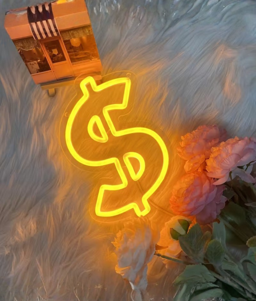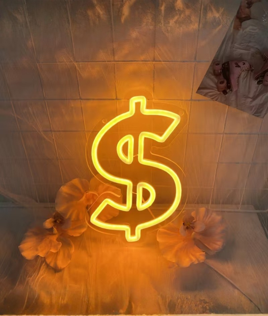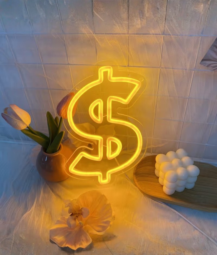 Dollar Neon geeft je kamer een knallende goudgele glow die meteen luxe, humor en pure swagger uitstraalt. Het dollar symbool maakt elke ruimte opvallender en brutaal chique. Perfect voor studentenkamers, gamehoeken, barplekken en iedereen die leeft alsof elke dag payday is.