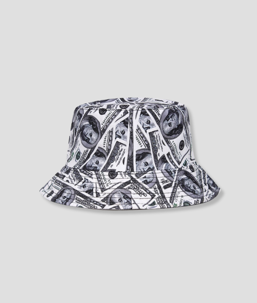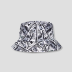 Met de iconische dollarbiljetten in zwart-wit, is deze bucket hat allesbehalve subtiel. Het ontwerp is een speelse verwijzing naar rijkdom, succes en de urban cultuur. Het hoedje is een statement piece dat iedere outfit naar een hoger niveau tilt en perfect past bij een casual, maar opvallende look.