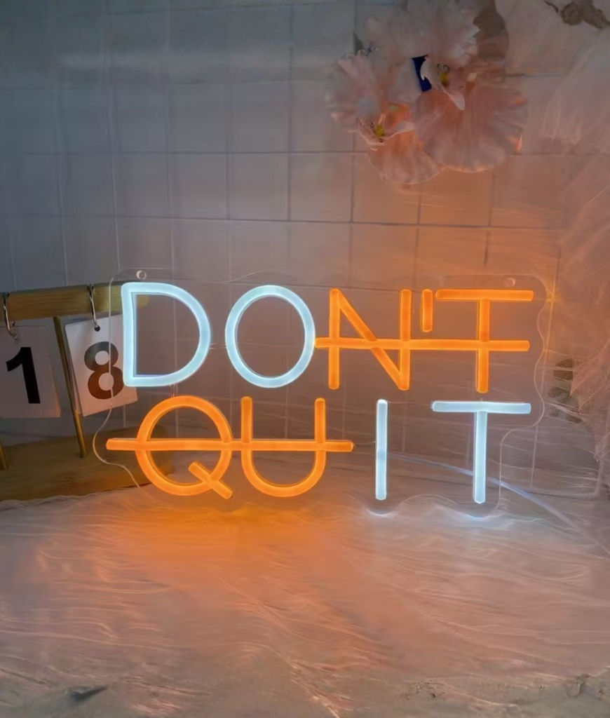 Met Dont Quit Neon voelt je kamer meer als een mini werkstation waar je doelen realistischer lijken. Het licht geeft precies genoeg power zonder dat het irritant wordt. Je blijft langer zitten en werkt net iets vaker dingen af.