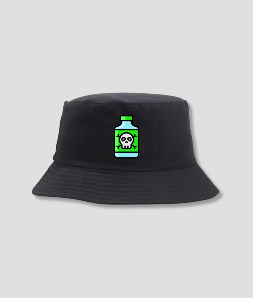 Oh wat smaakt dat drankie toch lekker, ik zou er alleen niet te veel van nemen. Leuke festival bucket hat in de kleur zwart.