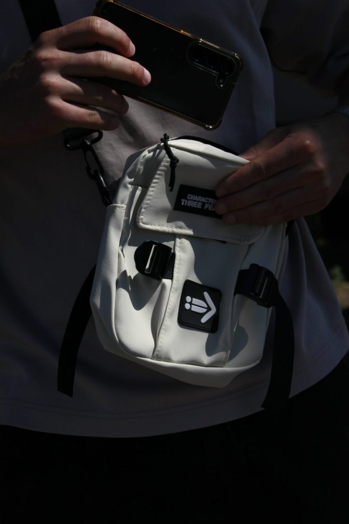 Crossbody draagt ’ie het best, dicht tegen je lijf, nul geslinger als de bass inzet. De band verstelt soepel en de kliksluiting voelt solide. In het hoofdvak passen je telefoon, oordoppen, kaartjes en lipcare; een extra vakje houdt sleutels of pasjes binnen handbereik. Lichtgewicht, stevig, en gemaakt om mee te dansen—deze gaat net zo makkelijk door een crowd als jij.