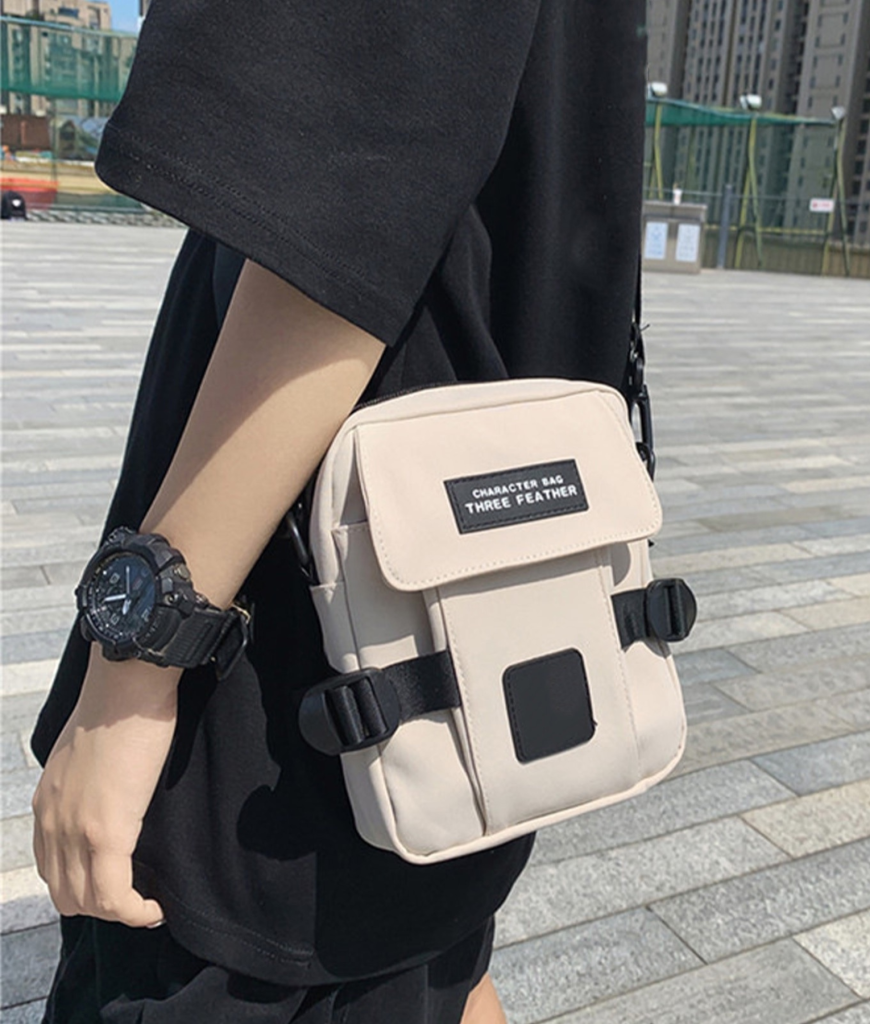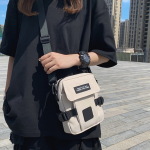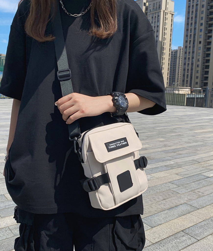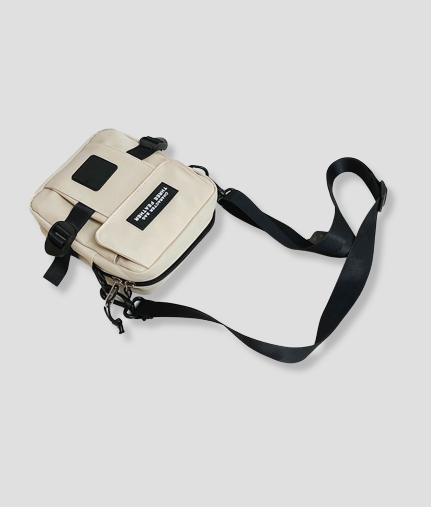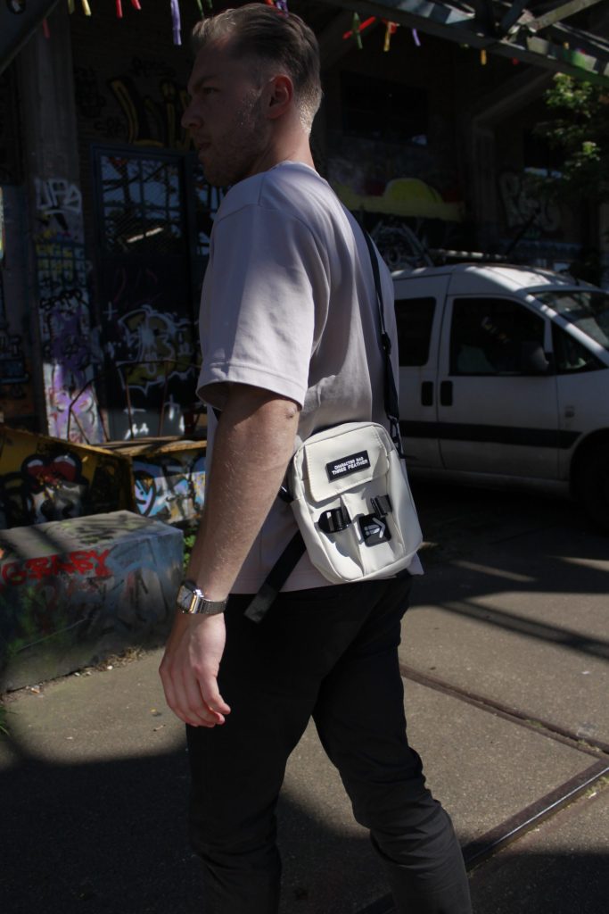 Zacht crème canvas met zwarte straps en patches: minimal, maar met attitude. Het oogt alsof je zo van de stage naar een afterbar wandelt zonder je look te breken. Die rustige tint slaat nooit mis—van techno bunker tot dagfestival. Subtiel statement: jij bent die maat die z’n zaakjes regelt, zonder te posen.