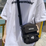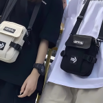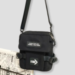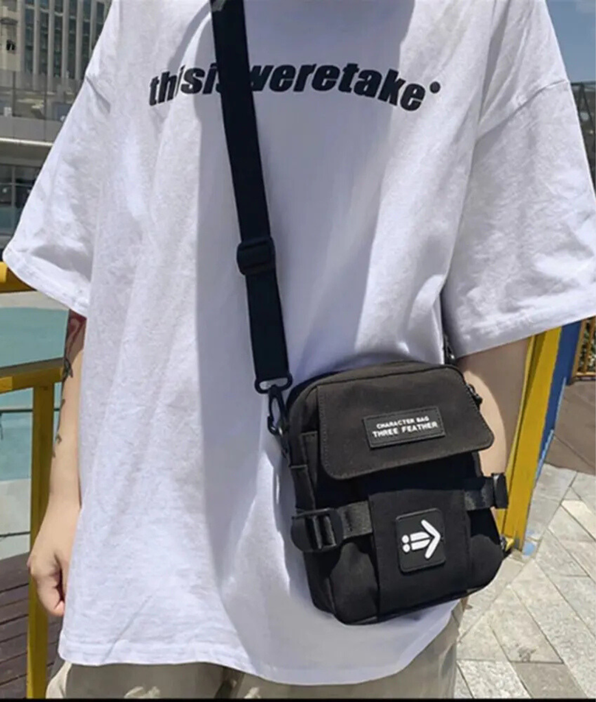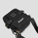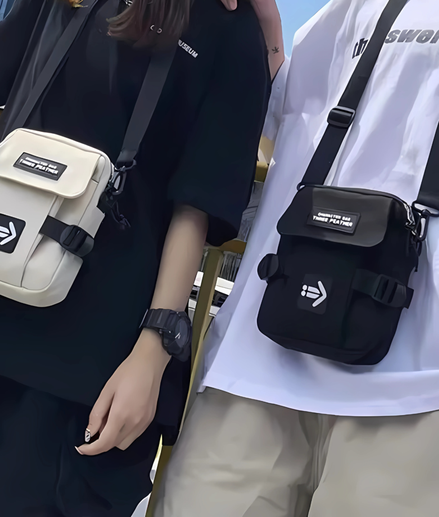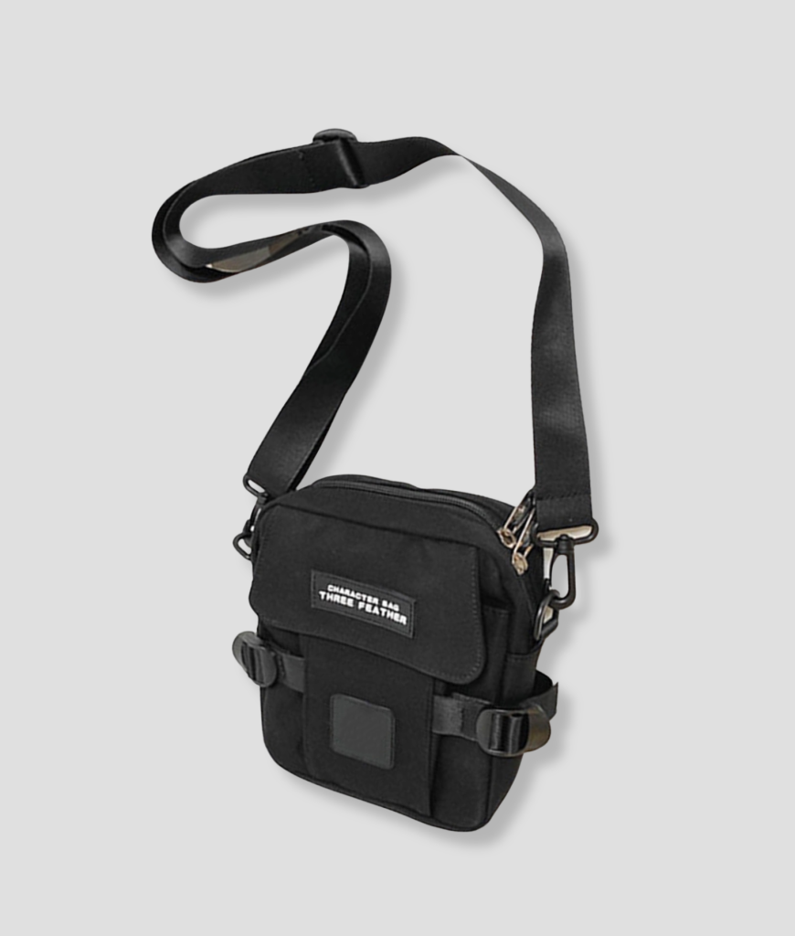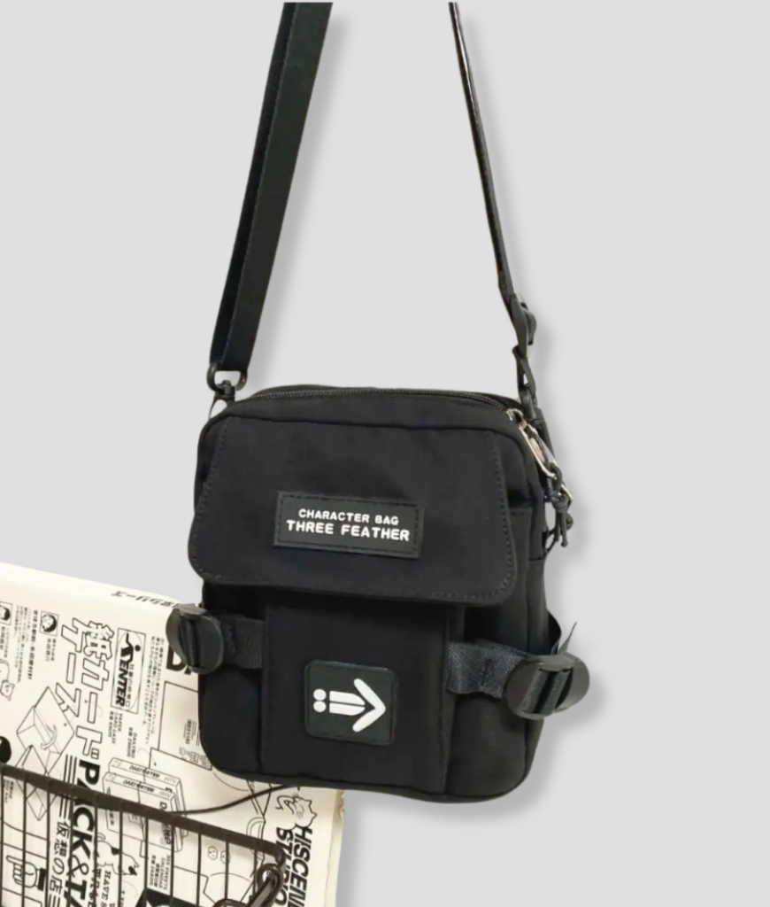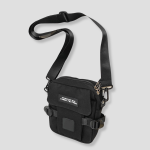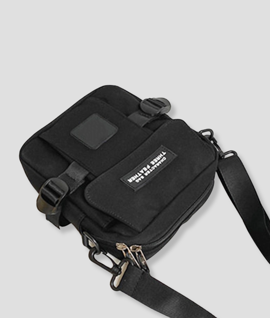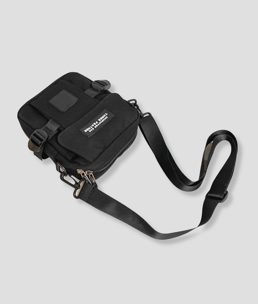 Strak zwart, compact en recht-toe-recht-aan. Geen schreeuwerige poespas—gewoon een cleane, techno-waardige look die overal blendt: van kelderrave tot festival mainstage. Het frontje zegt weinig, maar iedereen die het kent, herkent het meteen: dit is de tas van iemand die weet waar de nacht woont. Subtiele details, stevige rits, industriële vibe. Ziet eruit alsof ’ie tegen een stootje kan—en dat kan ’ie ook.