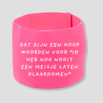 Roze, fel en onmogelijk te missen. De tekst knalt eruit en laat zonder omwegen zien waar je voor staat. Het heeft die studentikoze energie van avonden die beginnen als grap en eindigen als verhaal dat je niet kunt navertellen. De vibe is simpel: grote praat, weinig resultaat, maar wél altijd lachen.