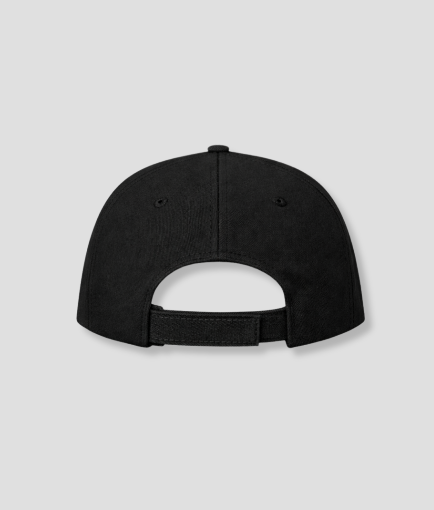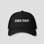 Deze zwarte cap laat je zelf bepalen wat erop staat. Naam, bijnaam, grap, teamnaam of jaartal. Jij levert de tekst aan, wij zetten ’m strak op de voorkant.