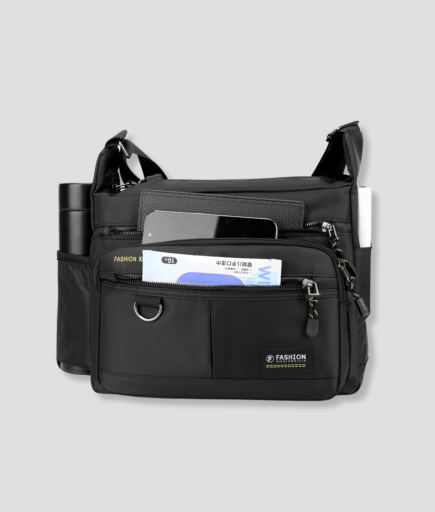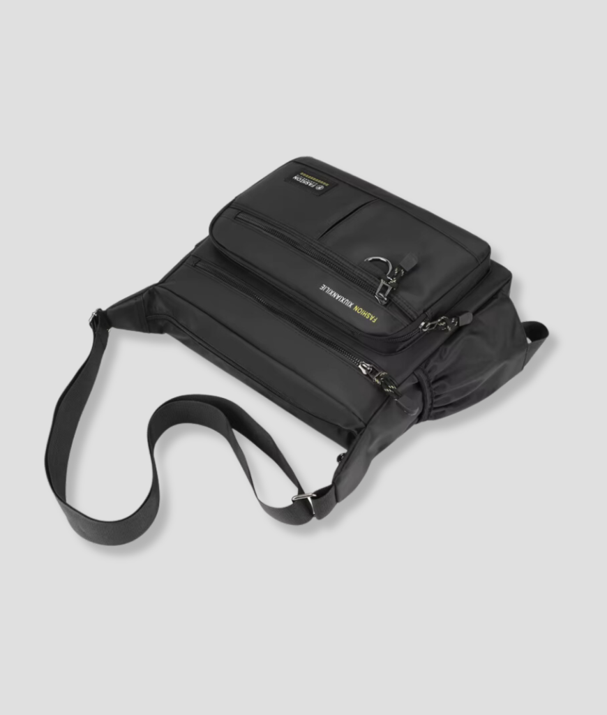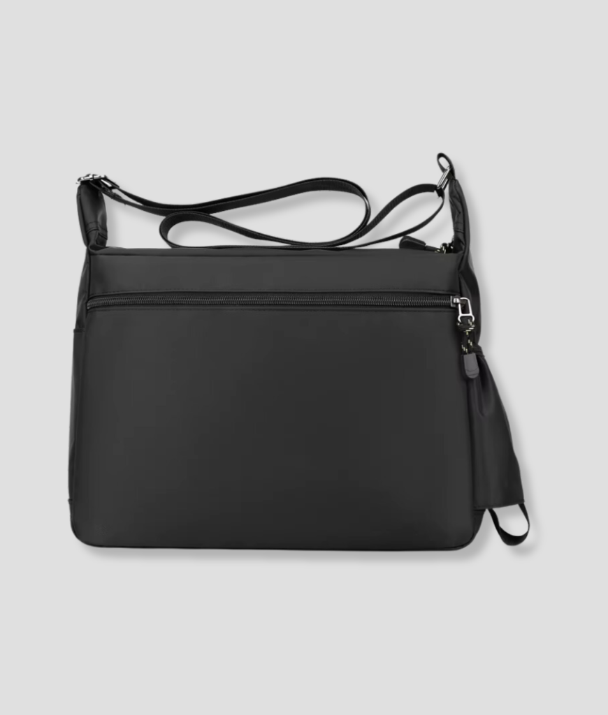 Dit is de tas die het hele feestje overleeft zonder in te boeten op stijl. Strak zwart, met een paar subtiele accenten die laten zien dat je weet waar je mee bezig bent. Geen poespas, gewoon praktisch, met precies de juiste ruimte voor alles wat je nodig hebt. Het zegt alles zonder hardop te schreeuwen. En hey, de tas weet zijn werk te doen zonder in de weg te zitten. Jij hebt alle vrijheid, maar met alles onder controle.