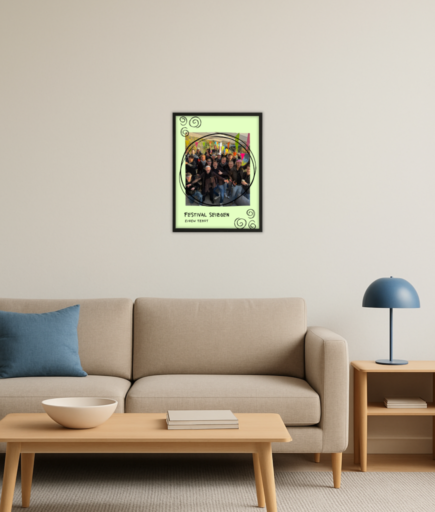 Het leukste aan deze poster is dat je er je eigen foto in laat zetten. Dus die groepsfoto waar niemand met zijn ogen knippert, het moment waarop jullie allemaal in de regen stonden te dansen of dat ene legendarische shot waar je eigenlijk niet eens meer weet hoe het is ontstaan, krijgt een plek in het ontwerp. Jij kiest de foto en wij zetten hem er netjes in. Zo wordt het echt jouw poster en geen standaard plaatje dat iedereen heeft.