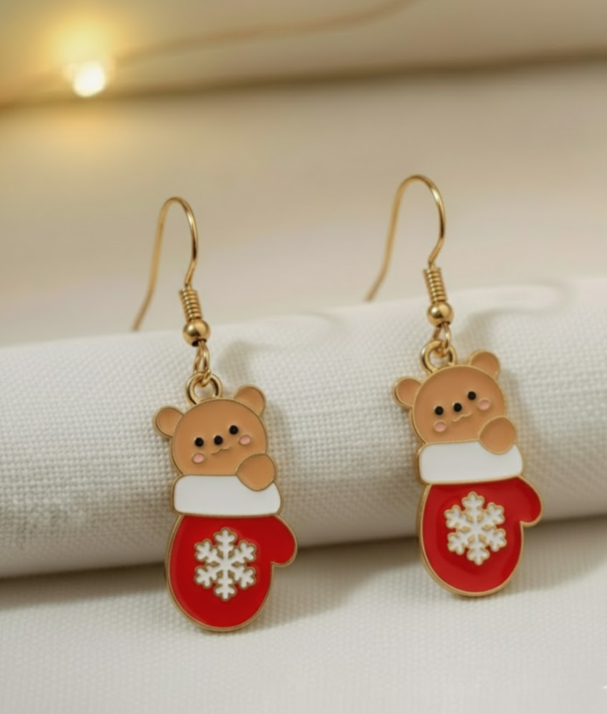 Deze schattige oorbellen met beertjes en wantjes brengen je meteen in de kerstsfeer. Perfect om jouw winterlook extra gezellig te maken. Warm, vrolijk en onweerstaanbaar cute!