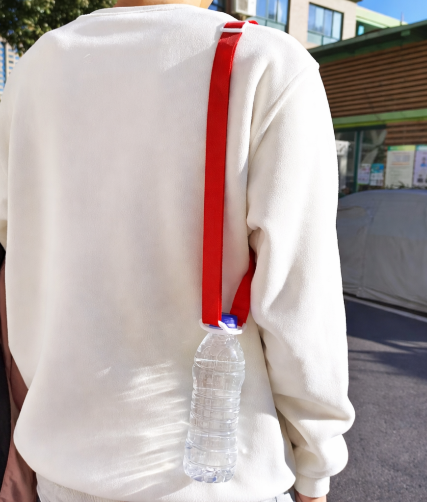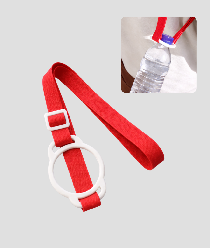 Houd je handen vrij voor de dikste dancemoves met dit knalrode festival koord voor je waterflesje! Klem de witte ring om de hals van je flesje, hang hem om je nek en je raakt je water nooit meer kwijt in de crowd.