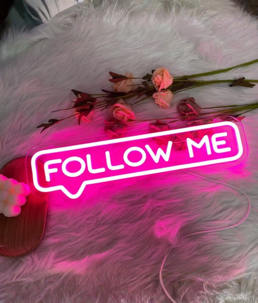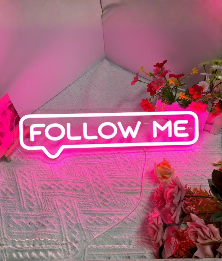 Met Follow Me Neon krijgt je kamer een soort socials in het echt gevoel. Het is grappig, opvallend en net brutaal genoeg. Mensen zien het en moeten automatisch lachen.