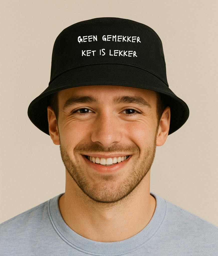 Deze zwarte bucket hat is perfect om een statement te maken, het is ook gewoon lekker.