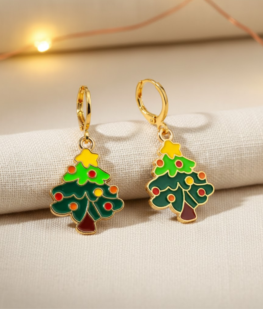 Deze kerstboom-oorbellen zijn zo’n detail dat meteen sfeer maakt. Je weet wel, dat moment dat je binnenkomt en iemand ziet dat je effort hebt gedaan zonder te schreeuwen. Dit is holiday chaos, maar dan stijlvol. Kerst, maar dan met persoonlijkheid. Ze zeggen: ik ben hier om het leuk te maken. En dat doe je ook.
